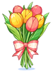 Costume bouquet made of red and yellow tulips. A large ribbon tied with a bouquet is also an attractive point. _______________________ Type: Costume Position: Garment Weight: 0 _______________________ Requirement: None |